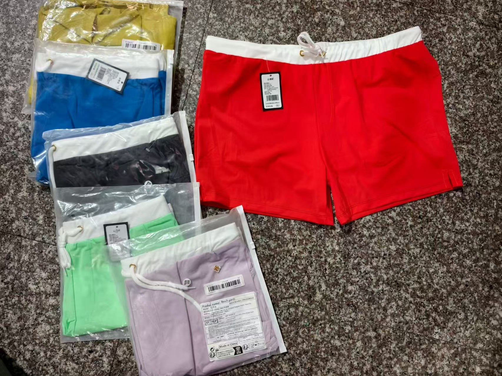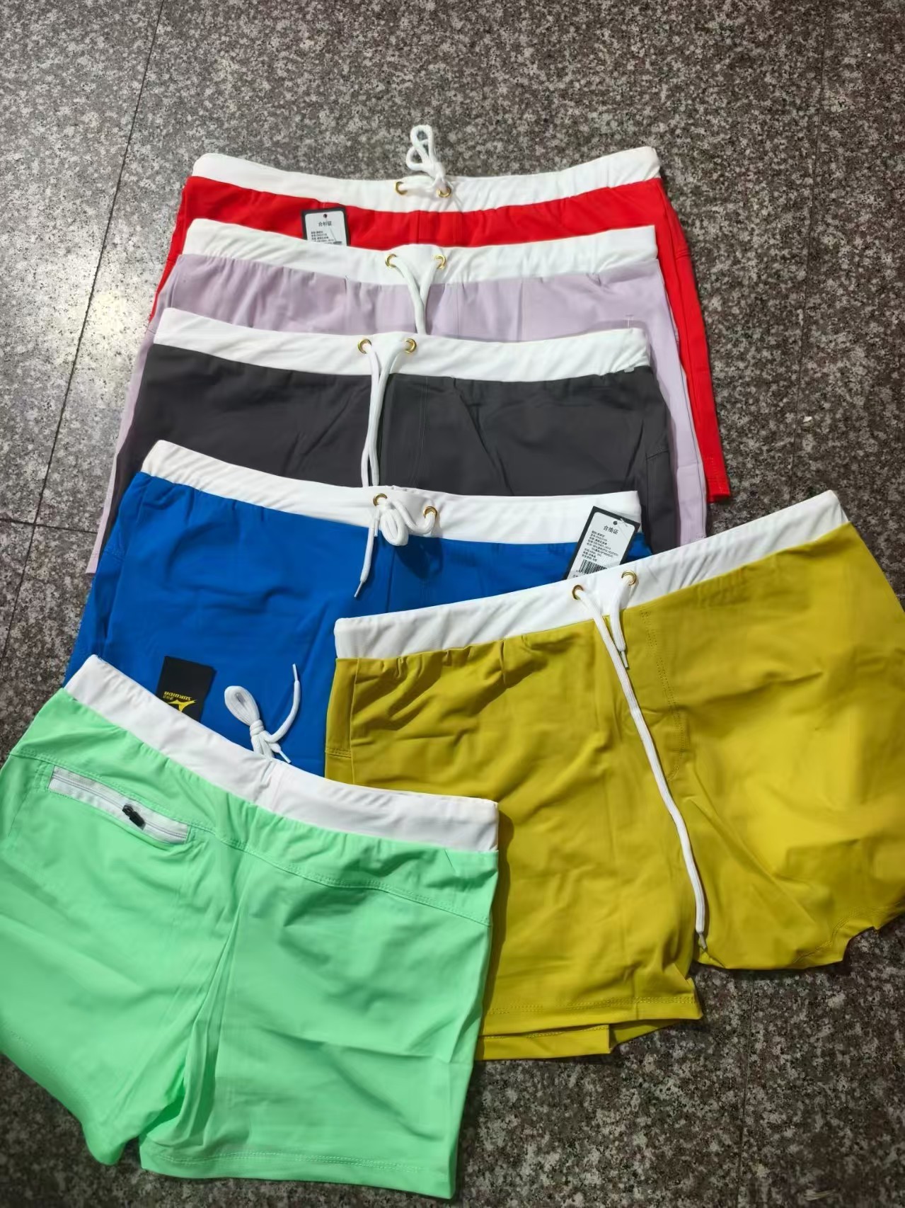 拼接款纯色男士运动短裤,双层防走光短裤系绳紧身运动速干裤,冲浪速干海边沙滩裤泳裤