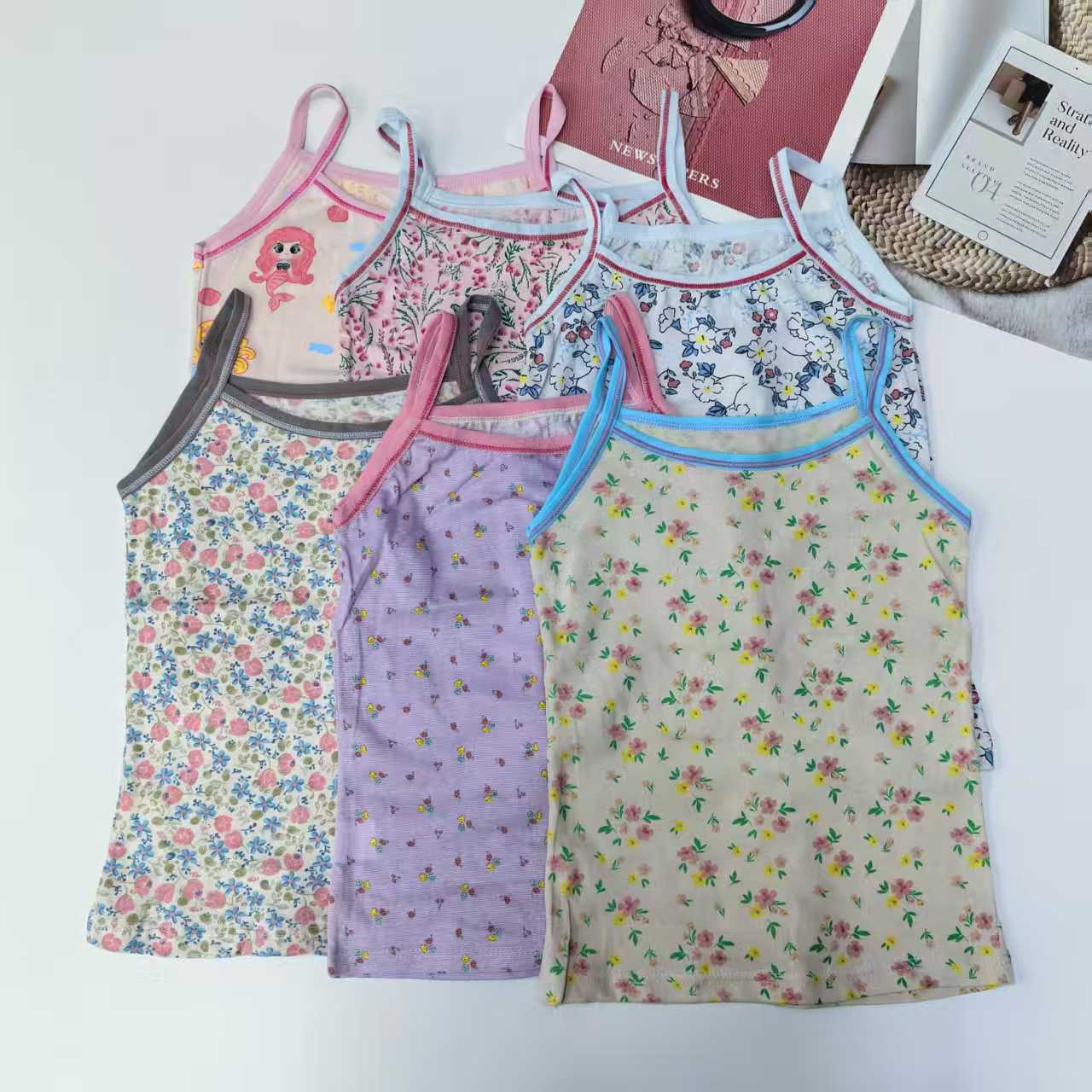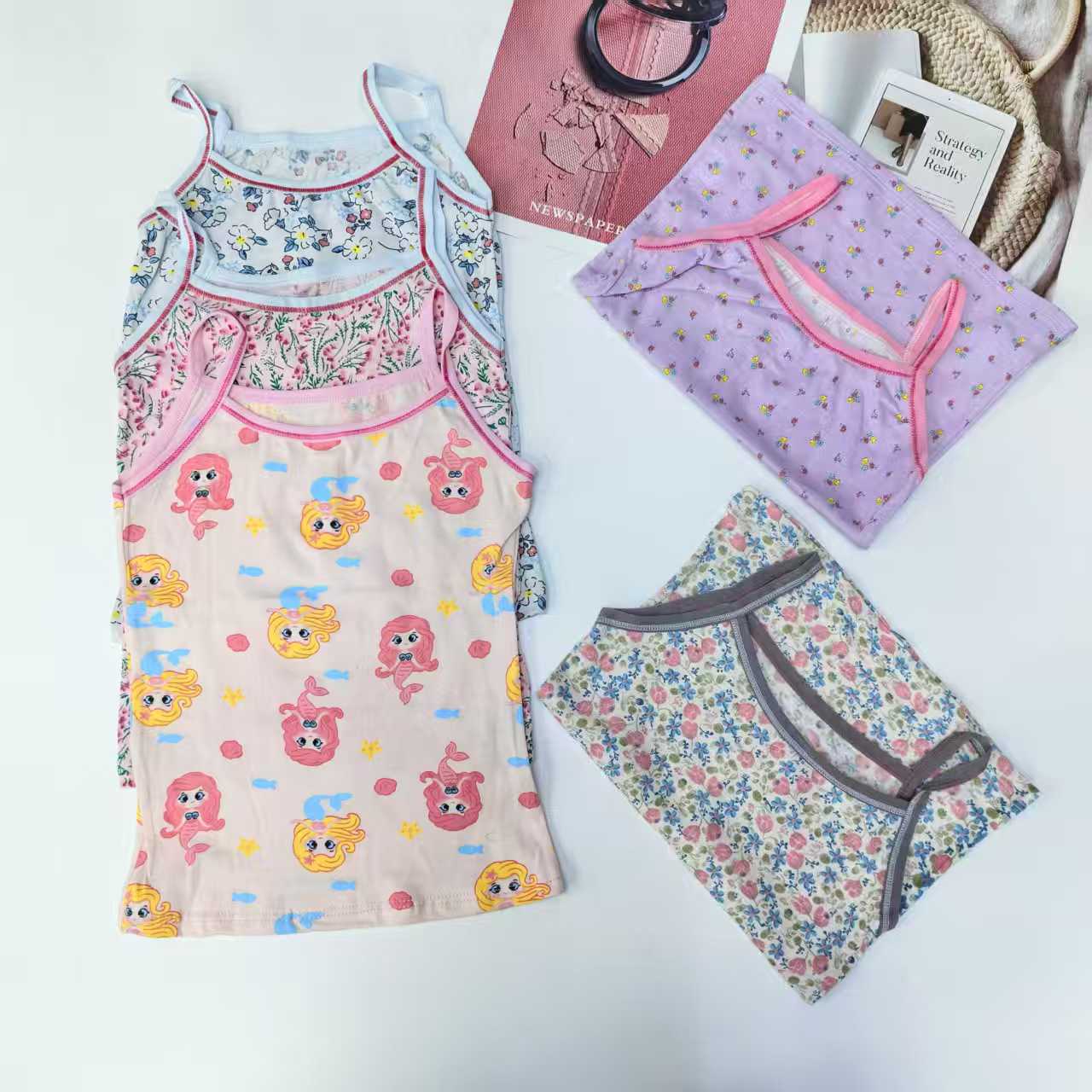 外贸出口吊带背心女童棉背心吊带卡通印花舒适透气细肩带