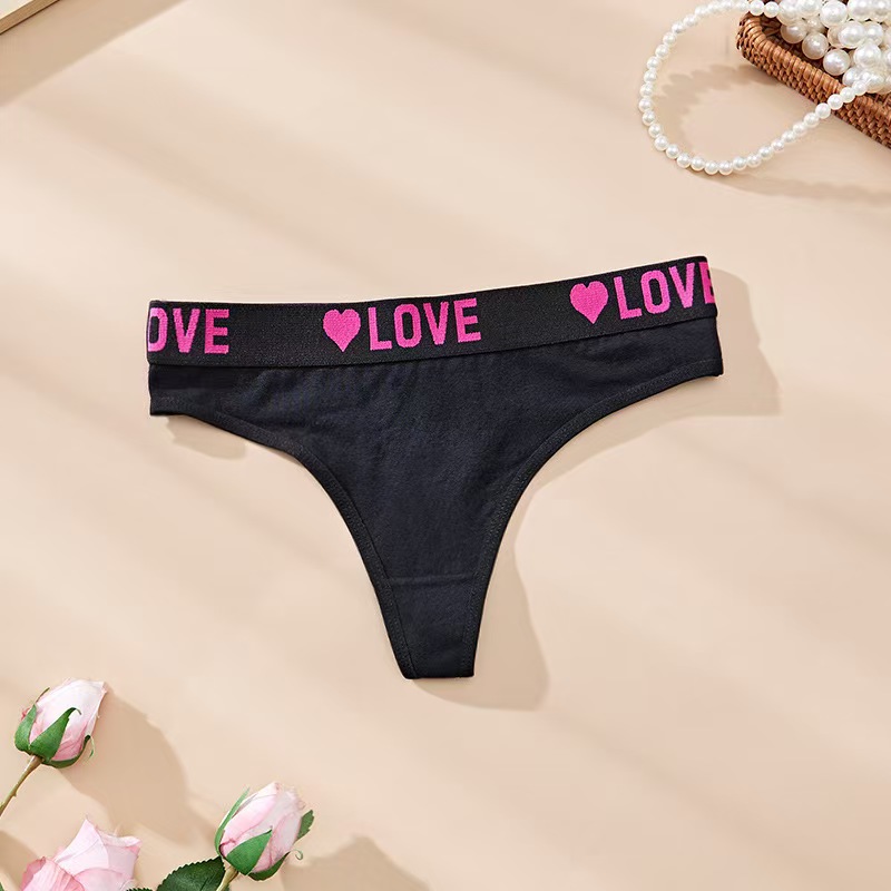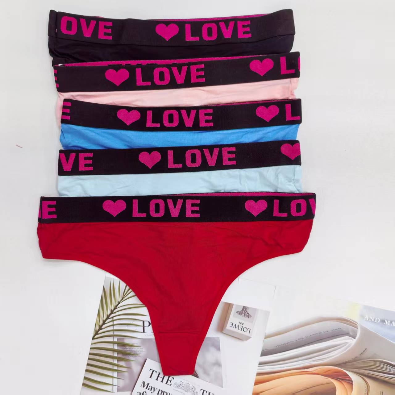 外贸出口女士内裤女士纯棉透气内裤欧美时尚丁字裤个性英文字母宽腰内裤女