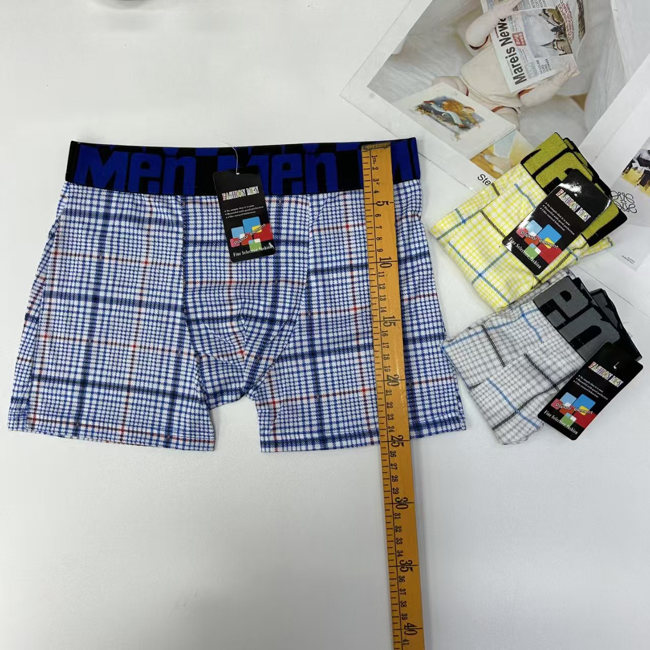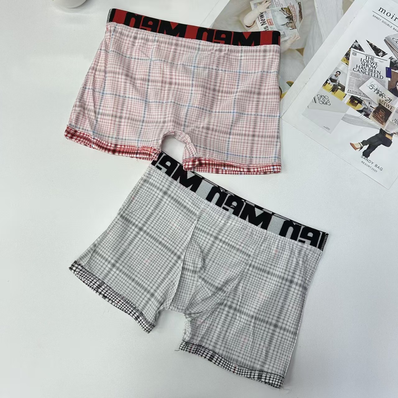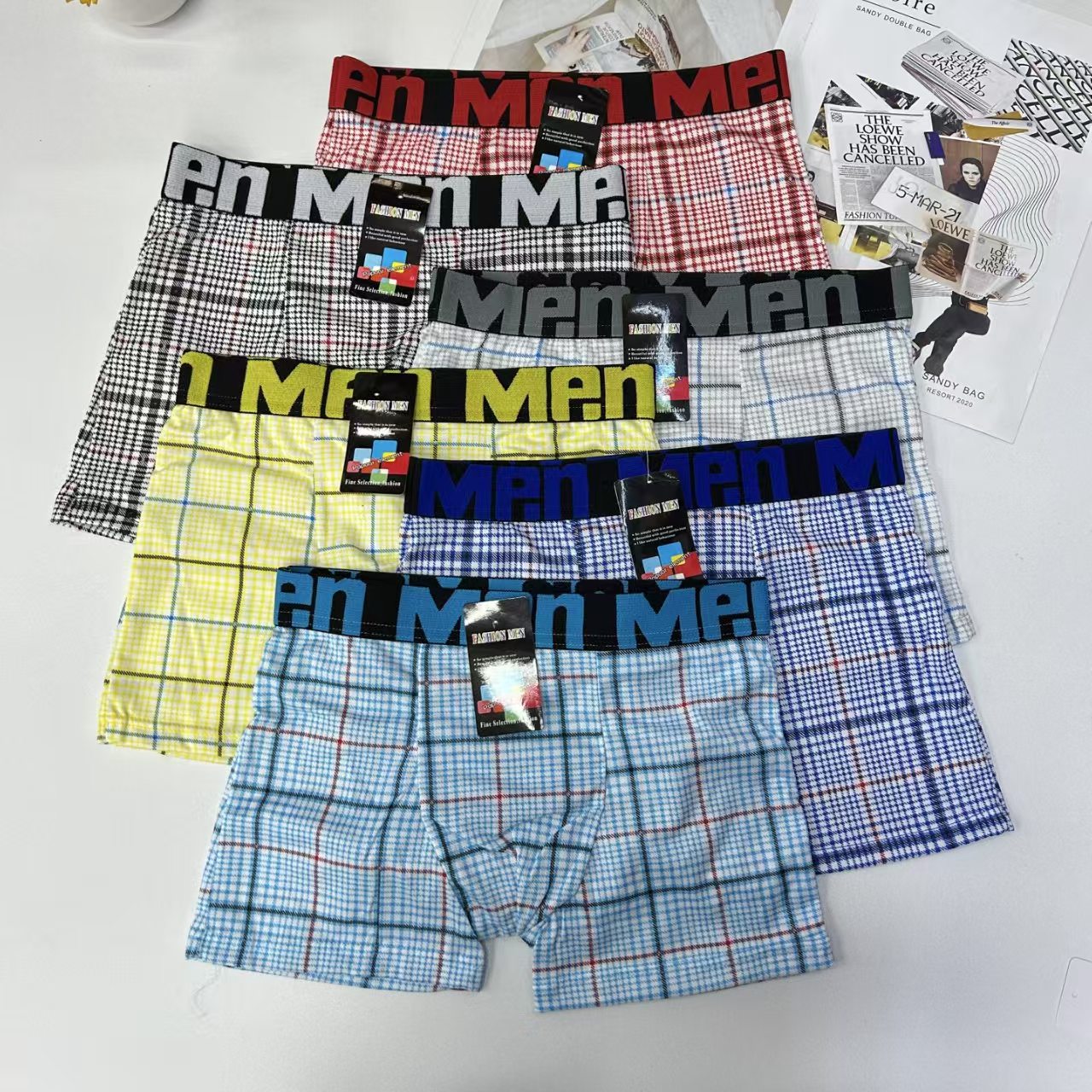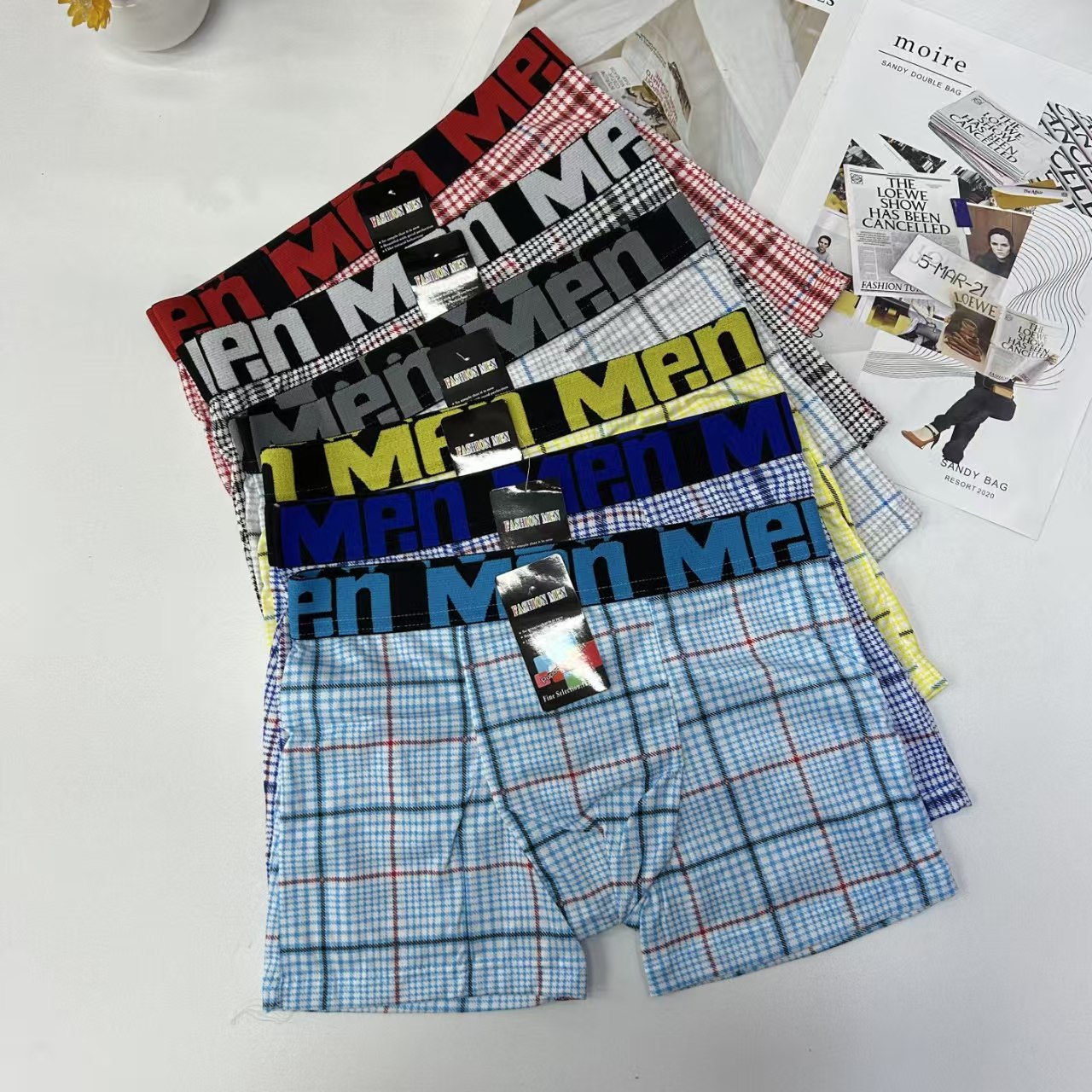 外贸出口男士内裤男士网格撞色条纹印花内裤提花腰头男士平角裤